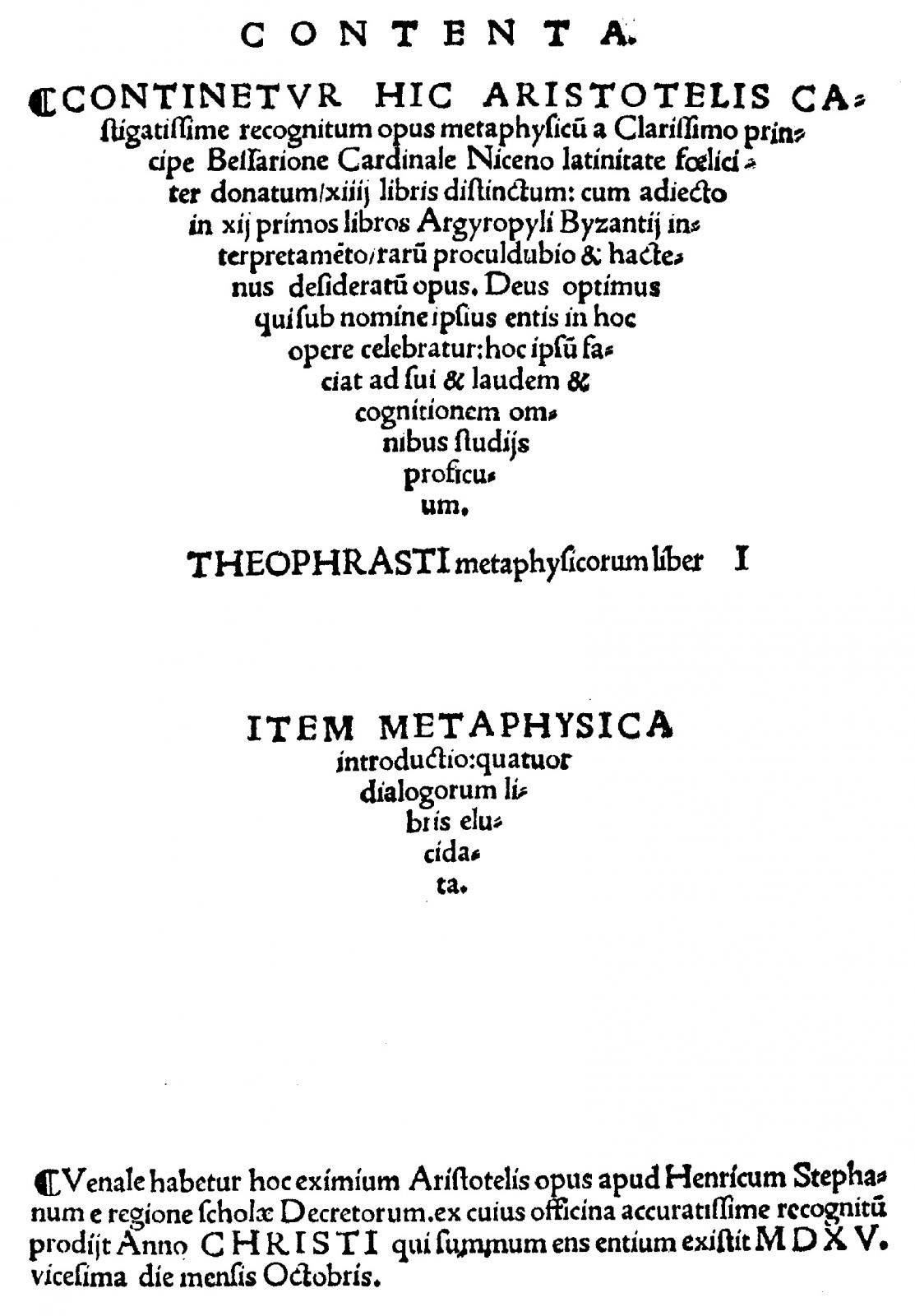 7–29. Henri Estienne the Elder, title page for Aristotle’s Metaphysics