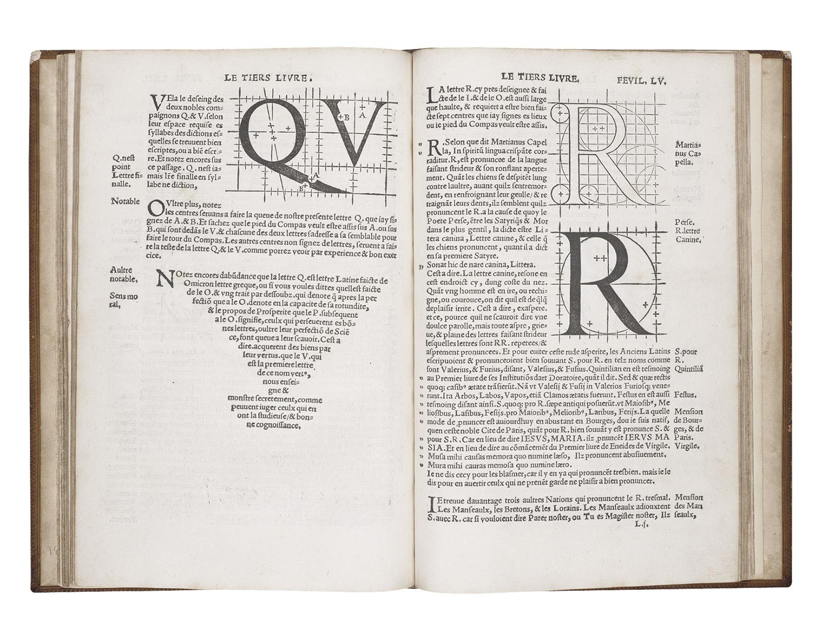 7–36. Geoffroy Tory, construction of the letters Q, V, and R from Champ Fleury
