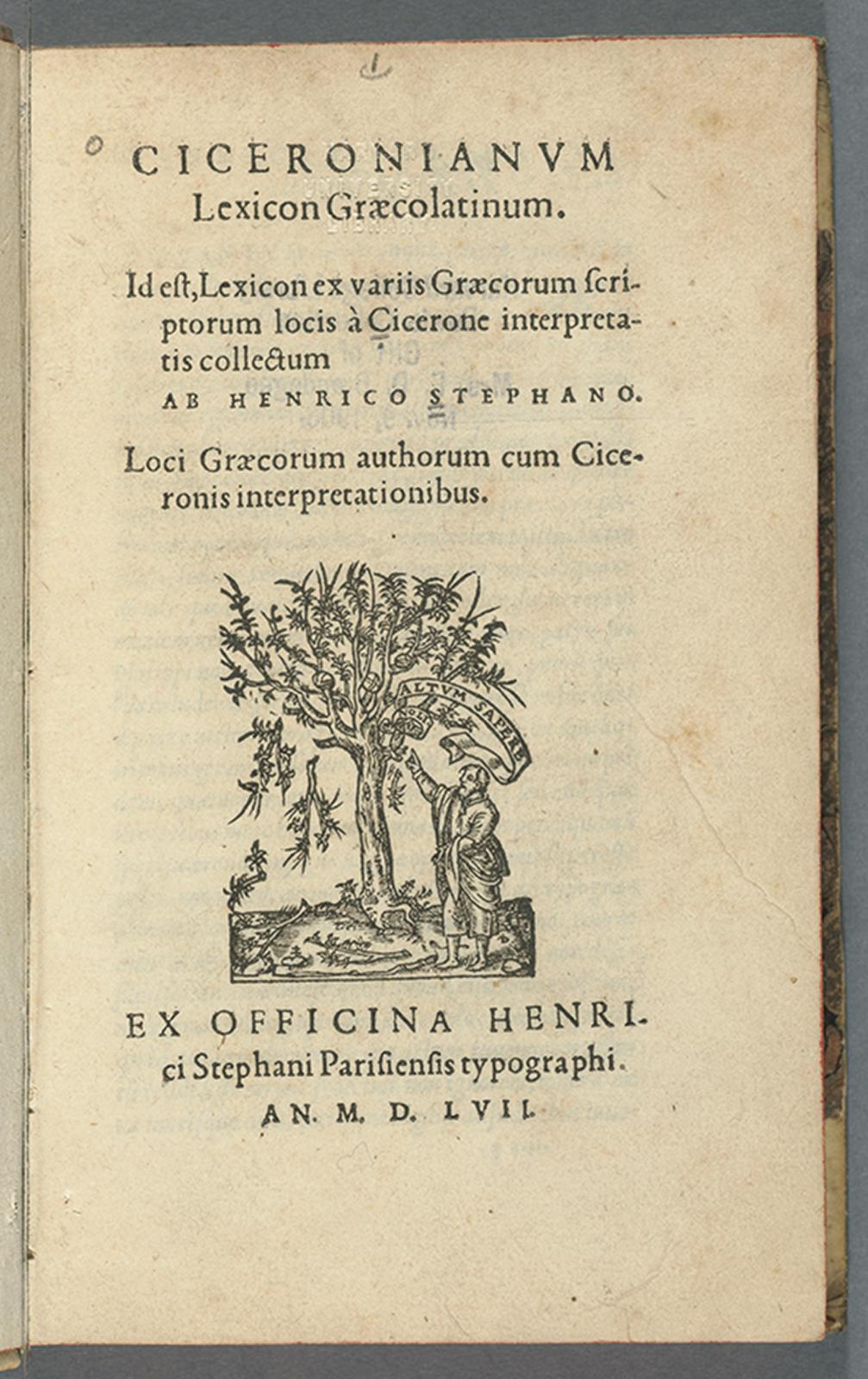 7–38. Henri Estienne the Younger, title page from Ciceronianum Lexicon