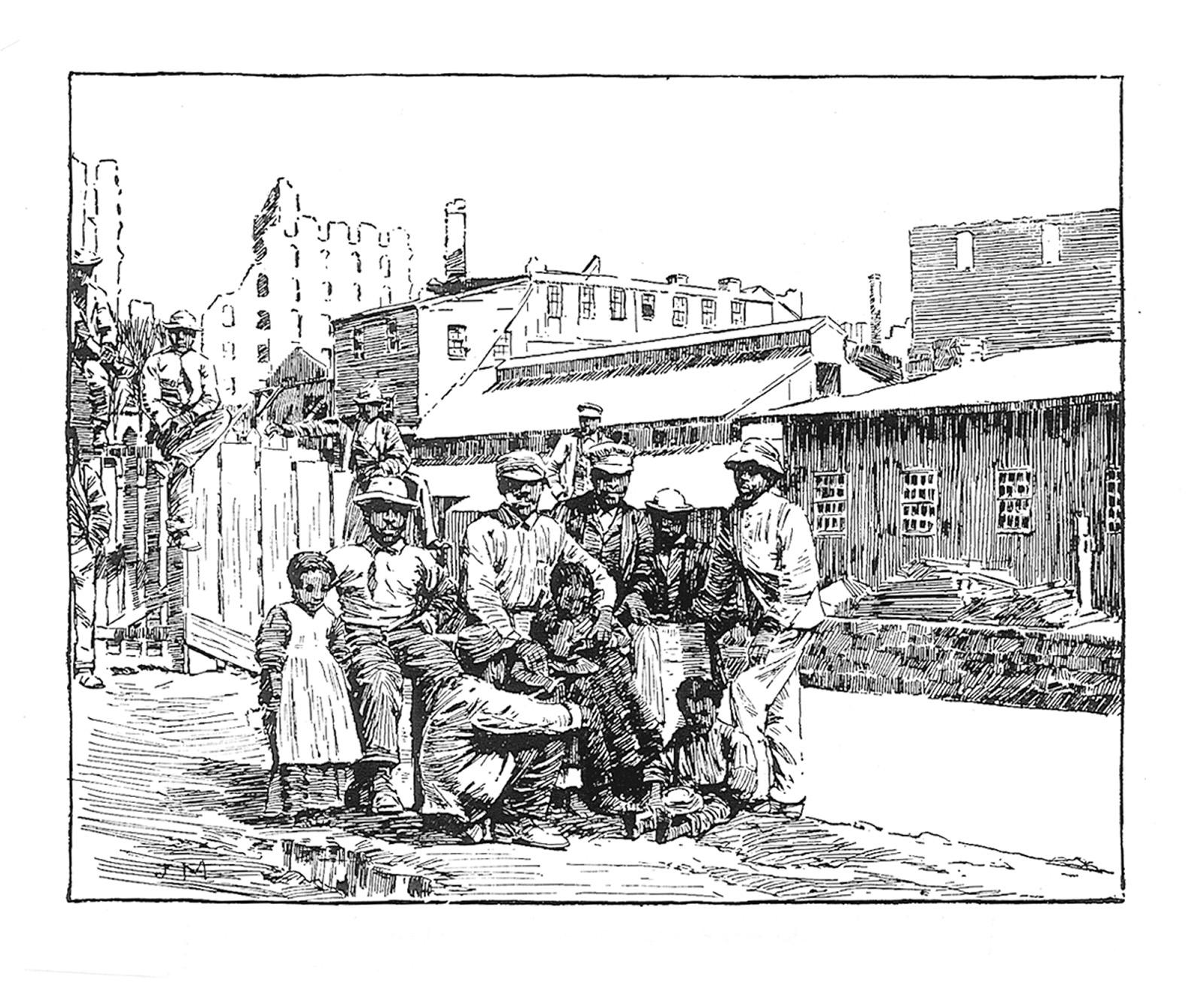 9–36. John Macdonald, wood engraving, “Freedmen on the Canal Bank at Richmond.”