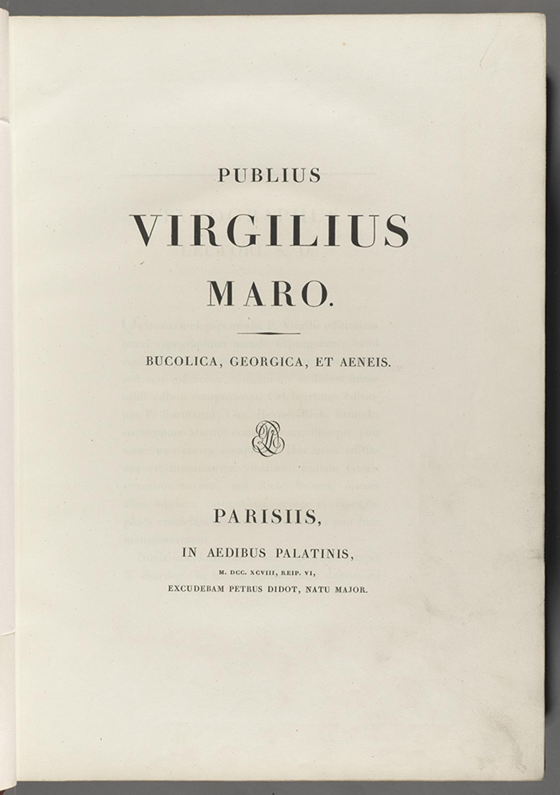 8–26. Pierre Didot, title page for Vergil’s Bucolica, Georgica, et Aeneis (Pastorals, Georgics, and the Aeneid)