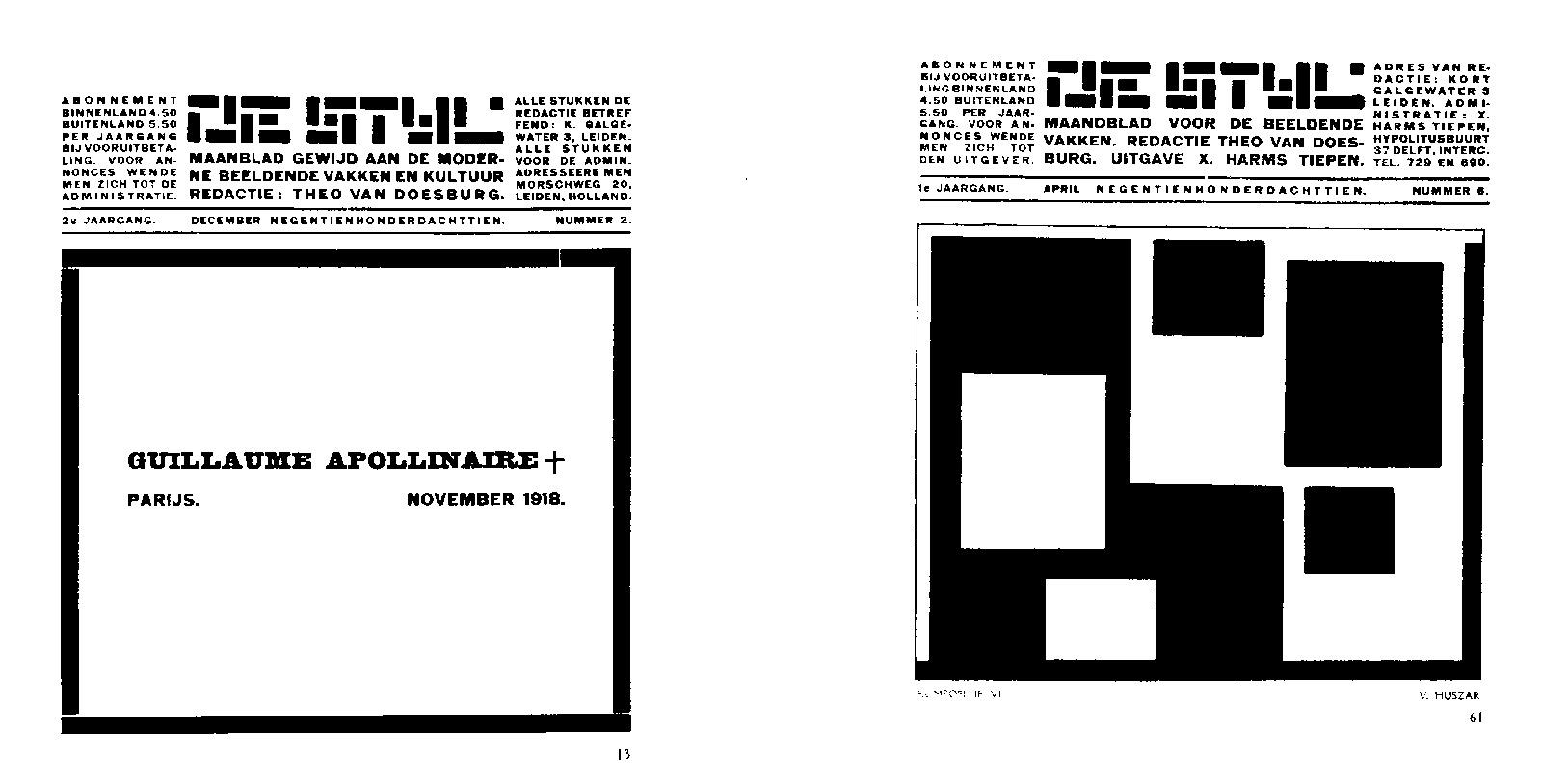 15–45. Vilmos Huszár, title pages for De Stijl