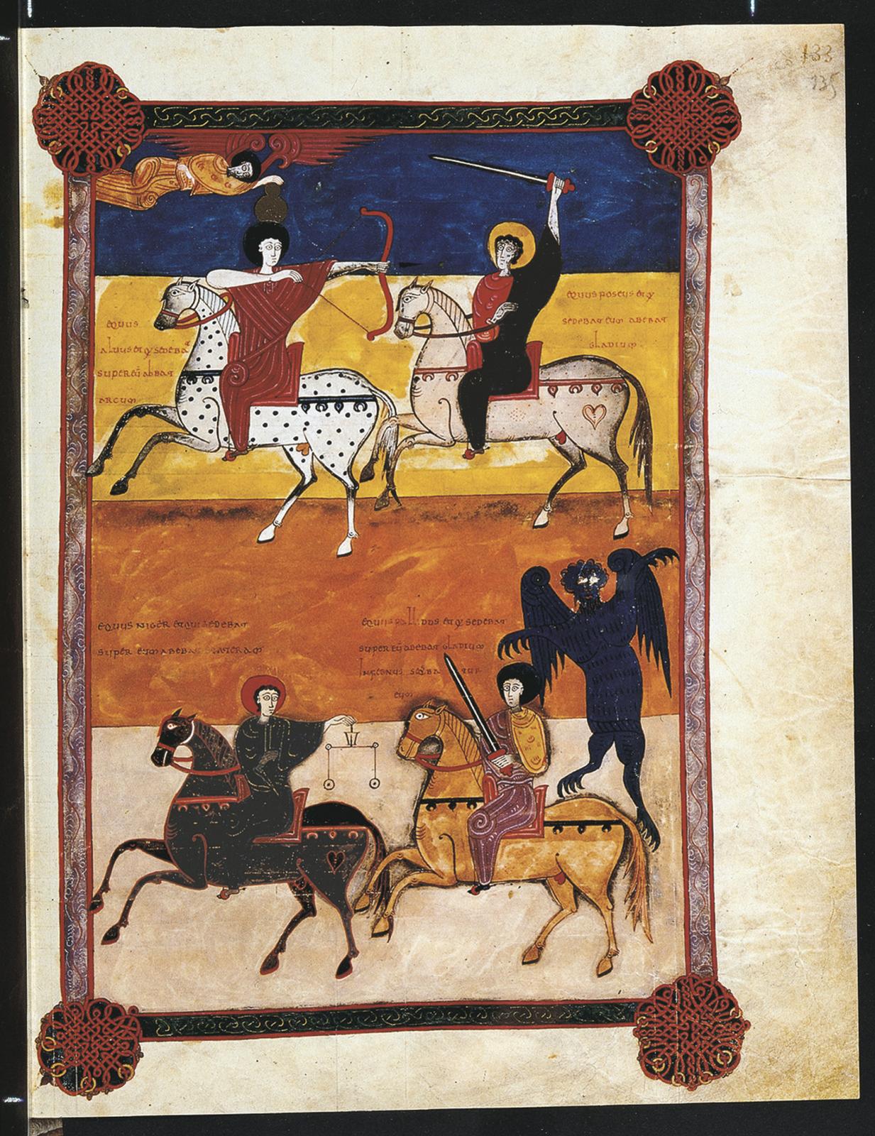 4–15. The Four Horsemen of the Apocalypse from the Beatus of Fernando and Sancha