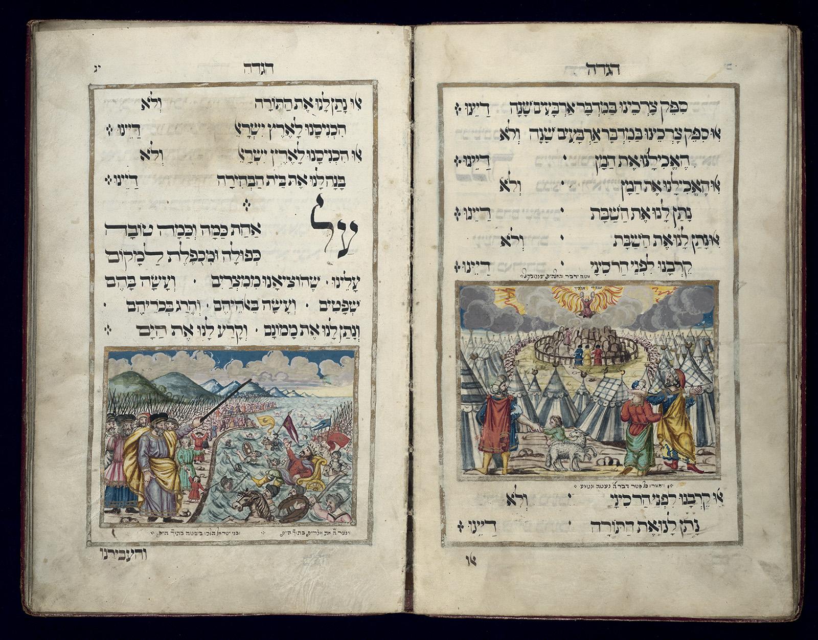 4–21. Double-page spread from the Mainz Haggadah