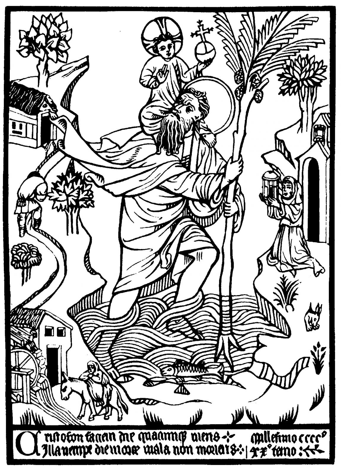 5–3. Woodblock print of Saint Christopher