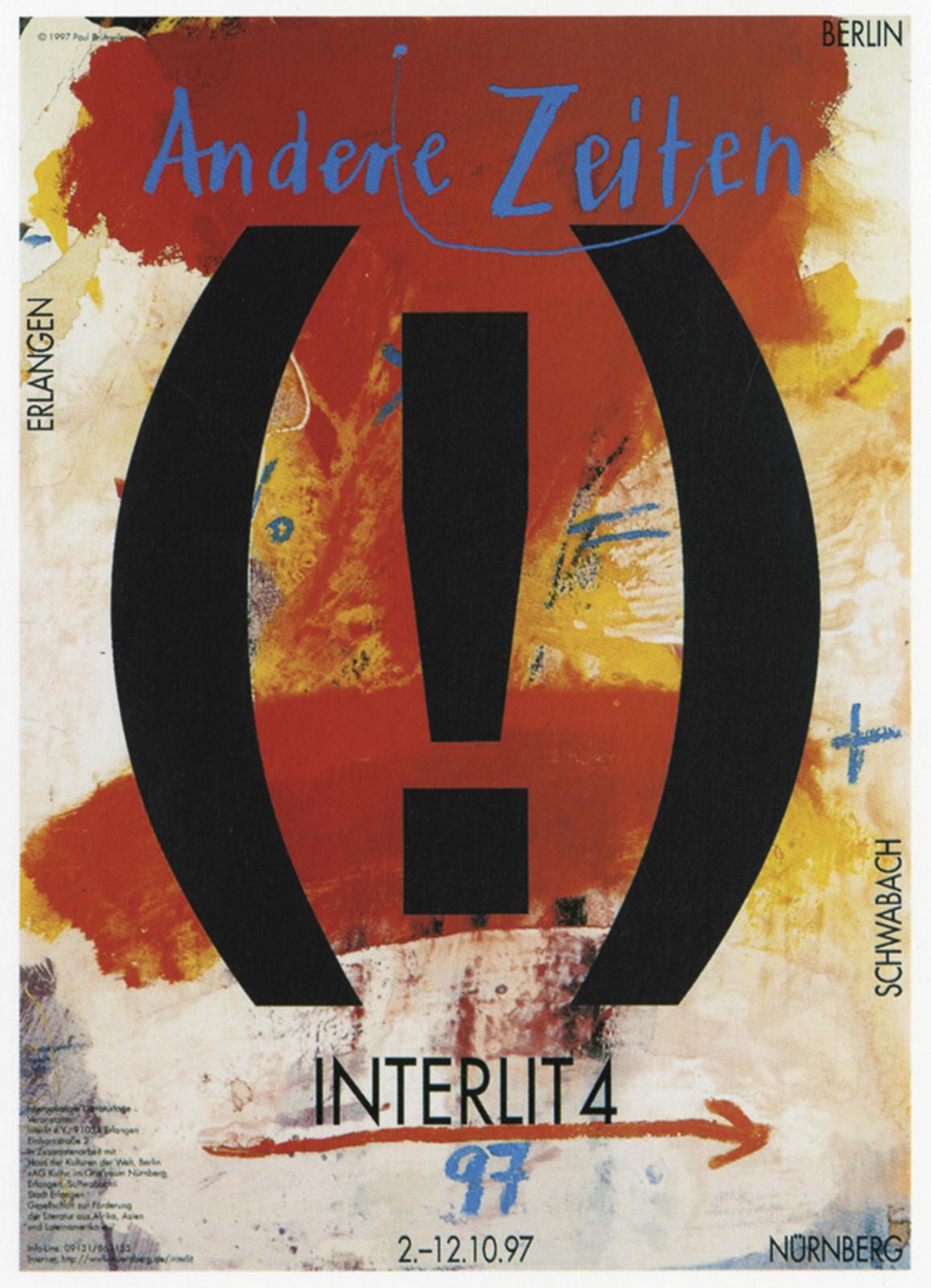 23–73. Paul Brühwiler, “Andere Zeiten” (Other Times), poster for Internationale Literaturtage Erlangen
