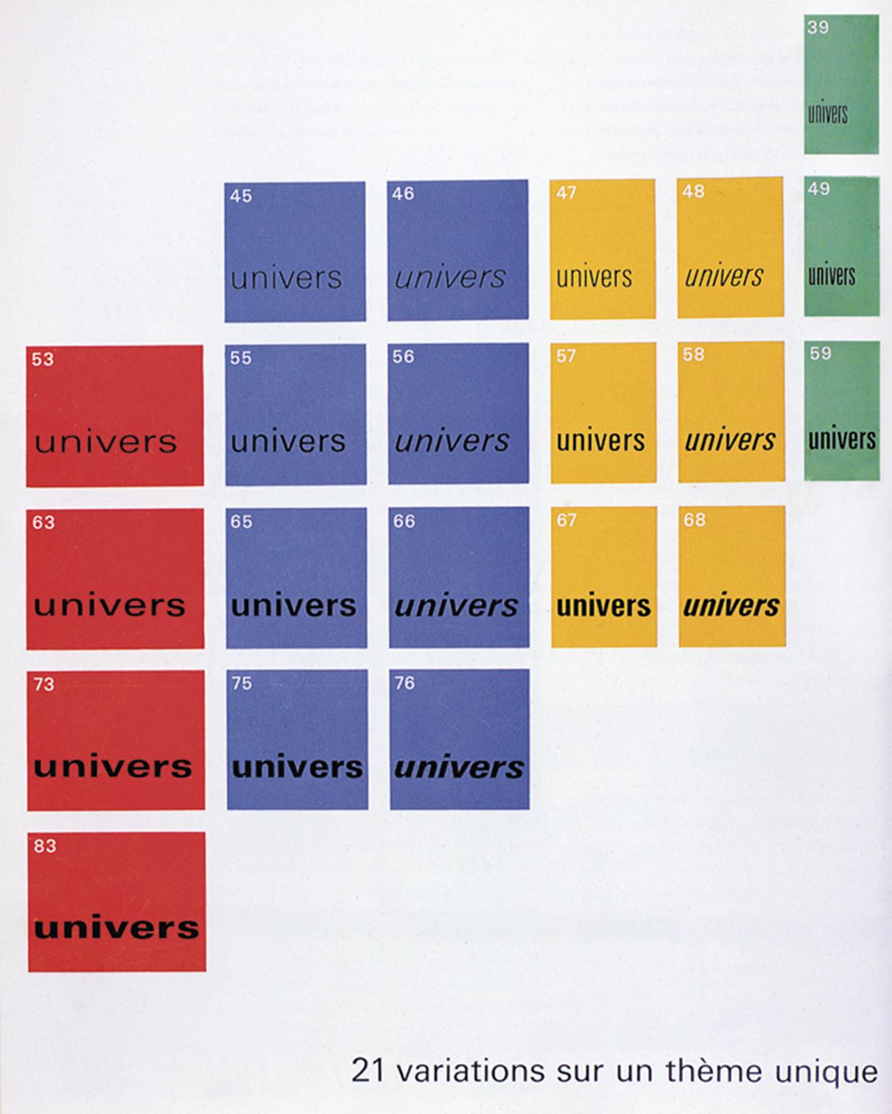 18–10. Adrian Frutiger, schematic diagram of the twenty-one Univers fonts