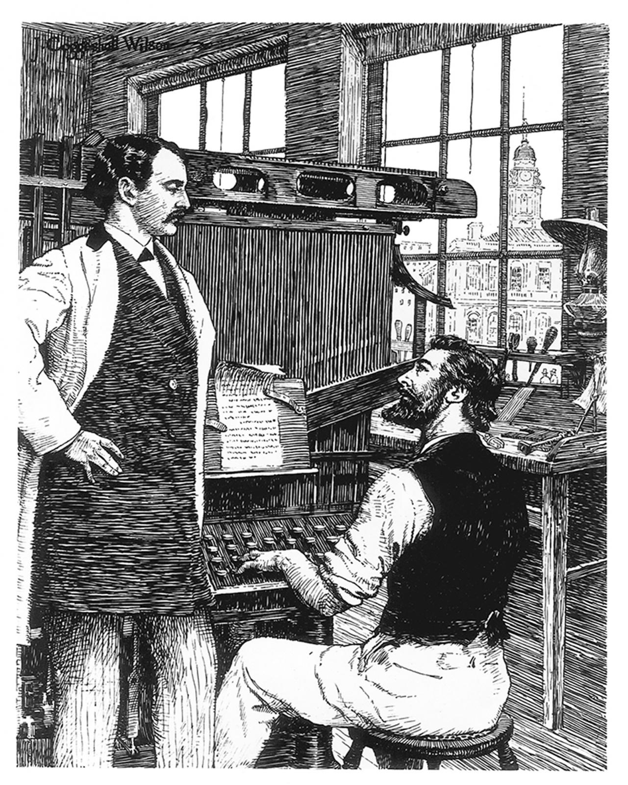 9–23. Ottmar Mergenthaler demonstrates the Blower Linotype